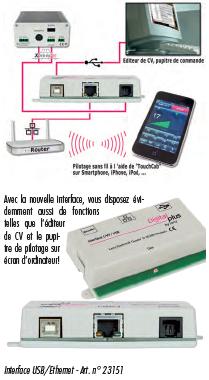 | |  | 23151 | - | Interface USB- Ethernet‚ inclus logiciel de programmation de décodeurs‚ éditeur de CV‚ pilotage sans fil avec Smartphone‚ iphone ou ipad‚ plug & play‚ nouv.2011 | 175,00 € | | | |