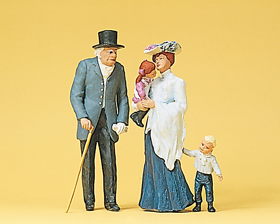 Viel homme avec chapeau haut de forme et dame avec 2 enfants