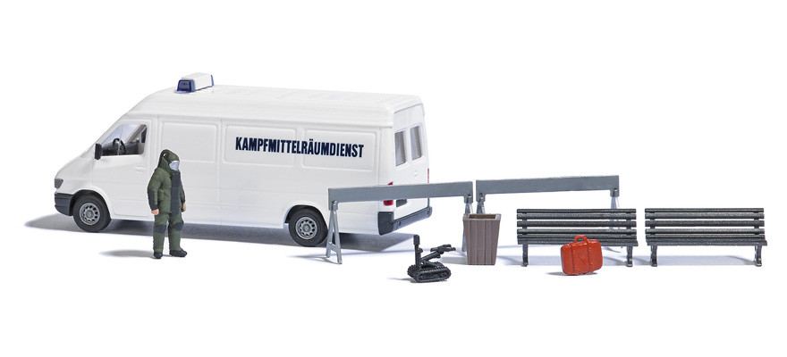 | |  | 7953 | 1/87 (HO) | Bagage abandonné avec démineur en habit de protection‚poubelle‚robot‚2 bancs‚2 barrières de sécurité et 1 véhicule d’intervention Mercedes Benz Sprinter | 27,50 € | | | |