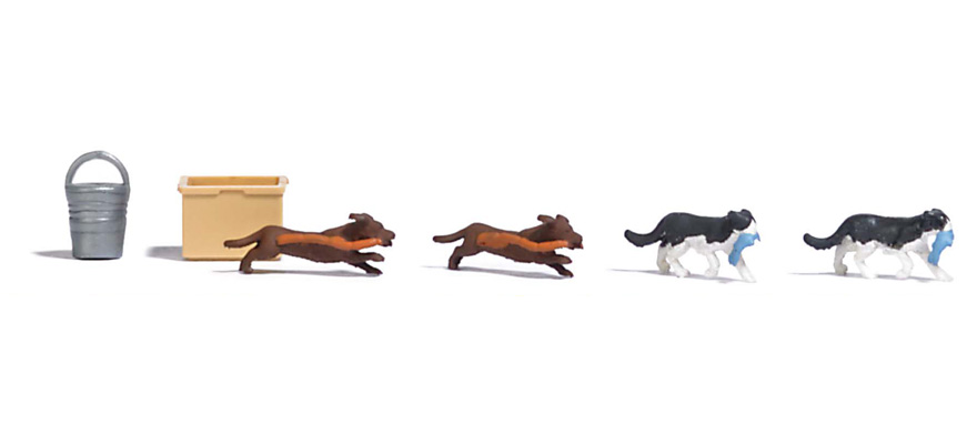 | |  | 7993 | 1/87 (HO) | 1 couple de chiens avec saucisses dans la gueule ‚ 1 couple de chats avec 1 poisson dans la gueule‚ un seau et une caisse | 14,50 € | | | |