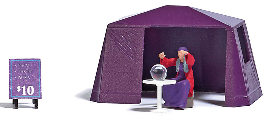 | |  | 7995 | 1/87 (HO) | Diseuse de bonne aventure avec tente‚ table et panneau publicitaire | 16,50 € | | | |