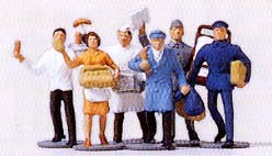 | | Merten | 0800 | 1/87 (HO) | 6 différents vendeurs ambulants ‚ serveurs ‚ journaux‚ chocolat glacé‚ saucisse‚ etc... à nouveau disponible le ?? | 9,95 € | | | |