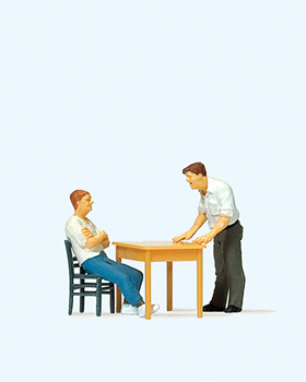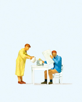 | |  | 28116 | 1/87 (HO) | Homme et femme au petit déjeuner‚ table‚ chaise‚ journal‚ divers accessoires | 6,49 € | | | |