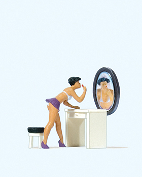 | |  | 28206 | 1/87 (HO) | Dame se maquille devant miroir ‚ table et chaise | 6,49 € | | | |