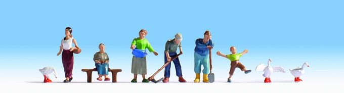 | |  | 15629 | 1/87 (HO) | 6 personnages de la ferme avec faux ‚ bêche‚ panier‚ 2 nourrissent la basse cour et 3 oies | 14,24 € | | | |