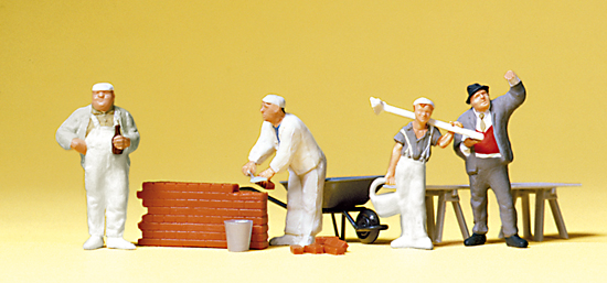 | |  | 10251 | 1/87 (HO) | 4 Maçons et accessoires ‚ brouette‚ pelle‚ muret‚ saut etc | 18,99 € | | | |