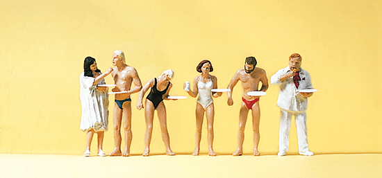 | |  | 10424 | 1/87 (HO) | 6 personnes au buffet‚ en costume ou en maillot de bain‚ avec assiettes‚ verre | 19,69 € | | | |