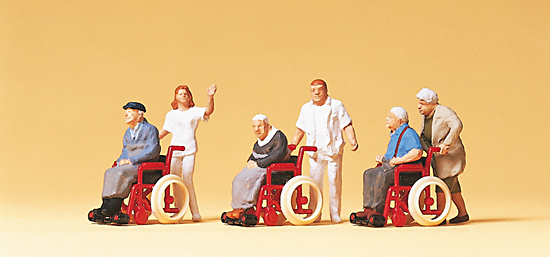 | |  | 10479 | 1/87 (HO) | 3 personnes agées en fauteuils roulants avec personnel soignant | 22,99 € | | | |
