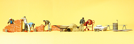 | |  | 10542 | 1/87 (HO) | 5 maçons avec truelle‚ brouette‚ bétonniére‚ sacs‚fûts‚ palettes ‚ seaux etc | 24,69 € | | | |