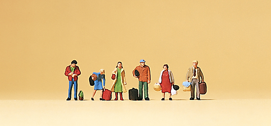 Voyageurs attendants ( 6 pers. ) avec accessoires‚ valises ‚ sacs etc