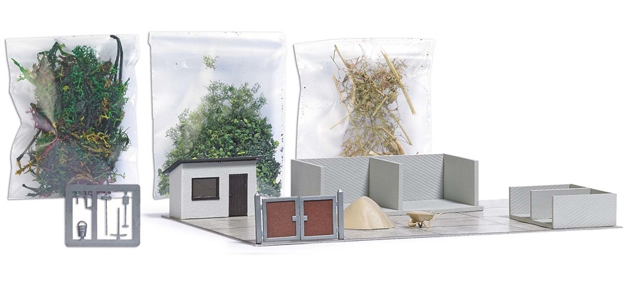 1635 1/87 (HO)Déchétterie‚ guérite de gardien‚ boxes de collecte‚dalle en bêton 168x119mm‚ tas de sable‚ brouette‚ outils‚ verdure‚ palissade etc‚ en kit 16,95 €Ajouter...