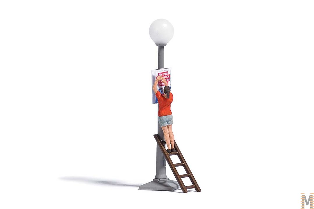 7908 1/87 (HO)Dame sur échelle accroche une affiche sur un réverbère (inclus) 13,80 €Ajouter...