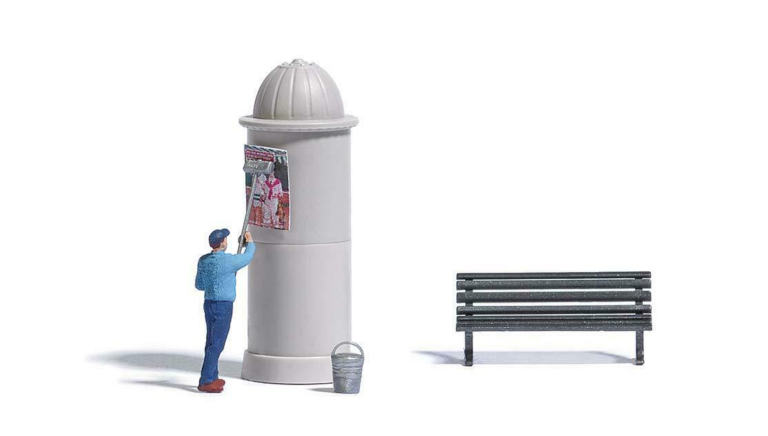 7909 1/87 (HO)Homme apposant une affiche avec colonne publicitaire‚ seau et banc 12,50 €Ajouter...