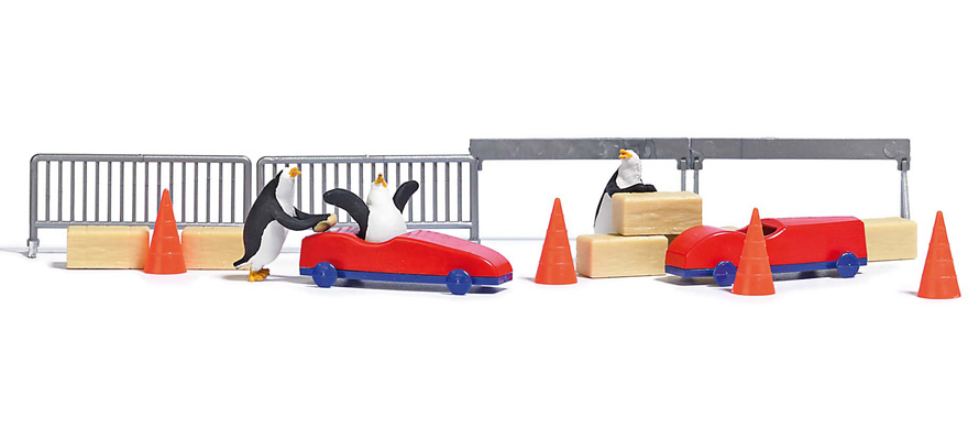 7924 1/87 (HO)3 pingouins dont 1 comme condiucteur avec 2 caisses à savon‚barrières‚bottes de paille et cônes de sécurité 25,90 €Ajouter...