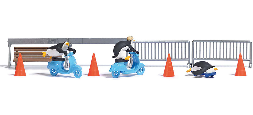 7925 1/87 (HO)3 pingouins avec 2 scooters et 1 skateboard‚ 1 banc‚ 4 barrières et 4 cônes de sécurité 25,90 €Ajouter...