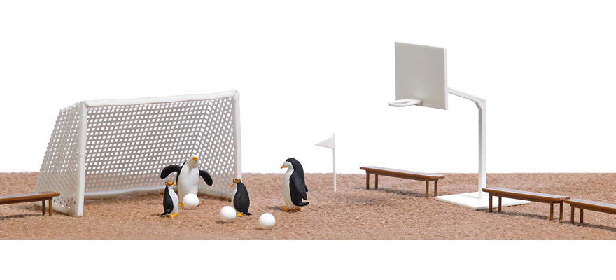 7926 1/87 (HO)4 pingouins de différentes grandeurs jouant avec 3 bollons‚ bancs‚ drapeaux de corner‚ panier de basket‚ poubelle et terrain de jeu (210 x 148 mm) 27,90 €Ajouter...