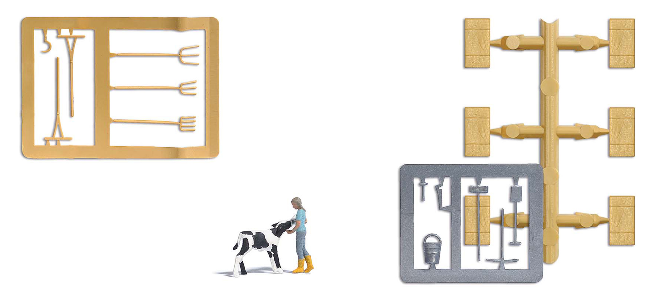 7932 1/87 (HO)Fermière nourissant veau au biberon‚ ballot de foin‚ outils d’étable 15,95 €Ajouter...