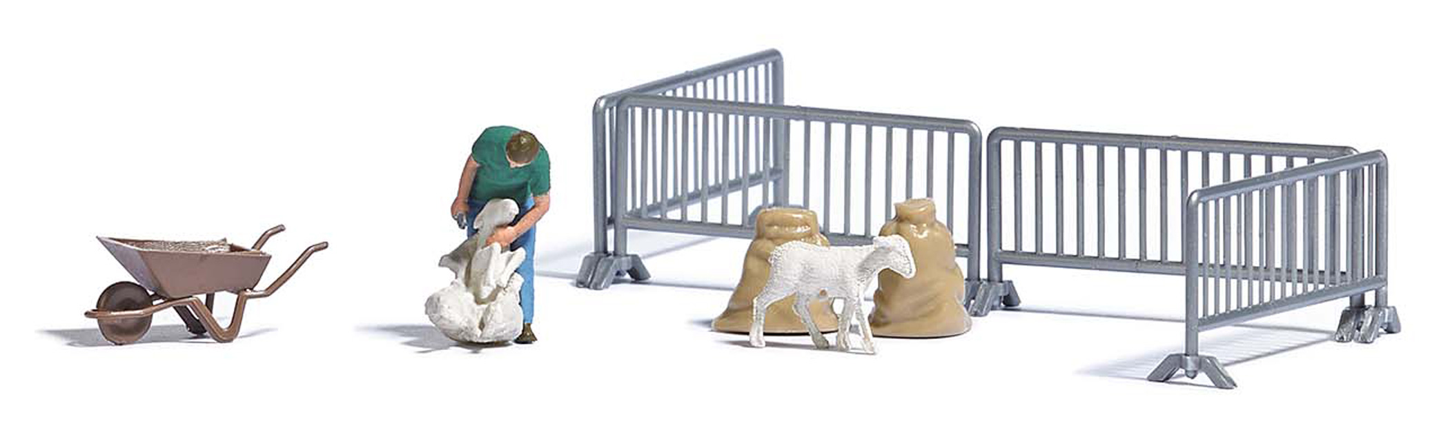 7933 1/87 (HO)Tondeur de mouton au travail‚ mouton tondu‚2 sacs de laine‚brouette‚ un enclos 19,80 €Ajouter...