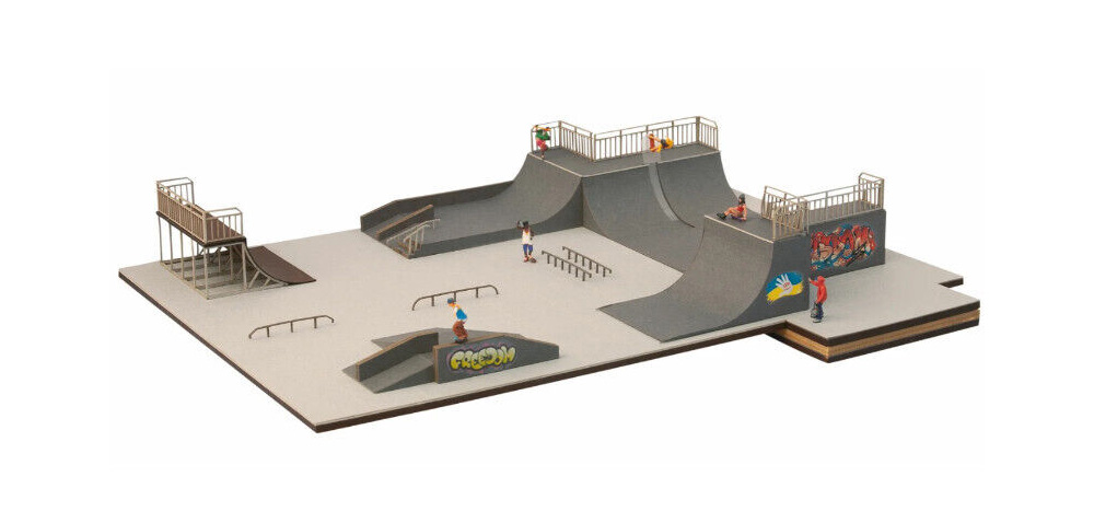 | |  | 66834 | 1/87 (HO) | Parc de Skate Board micro-motion‚ animé par des tours et des sauts de 6 skate boardeurs | 146,50 € | | | |