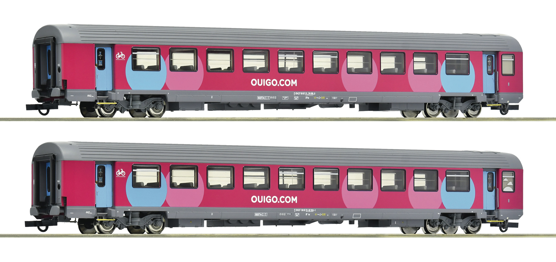 | |  | 6200024 | 1/87 (HO) | Coffret de 2 voitures voyageurs Corail‚livrées OUIGO‚type VTU B11tu‚ ép.VI‚ au lieu de 149.90 prix constructeur‚ 5 pièces en stock | 145,00 € | | | |